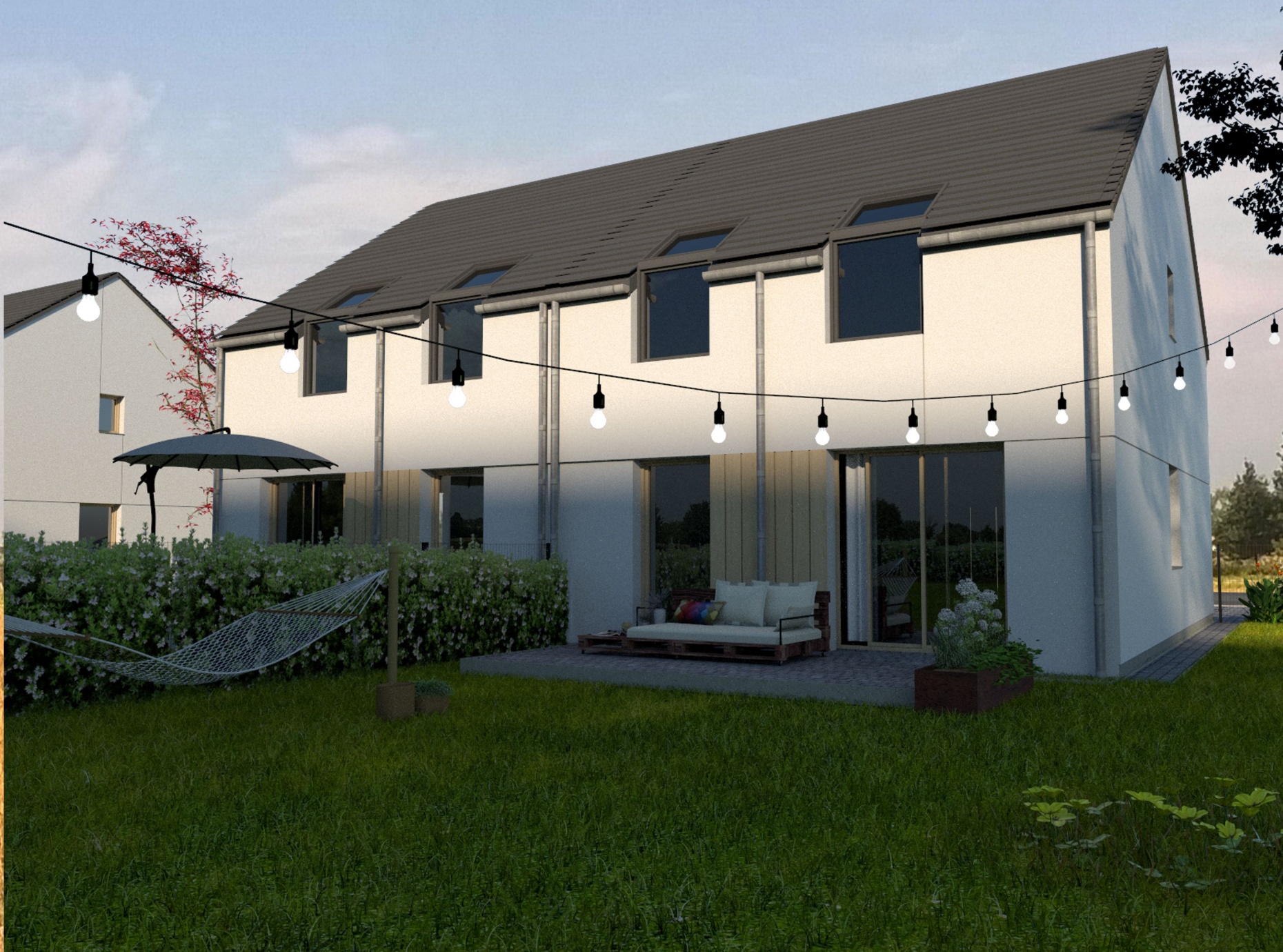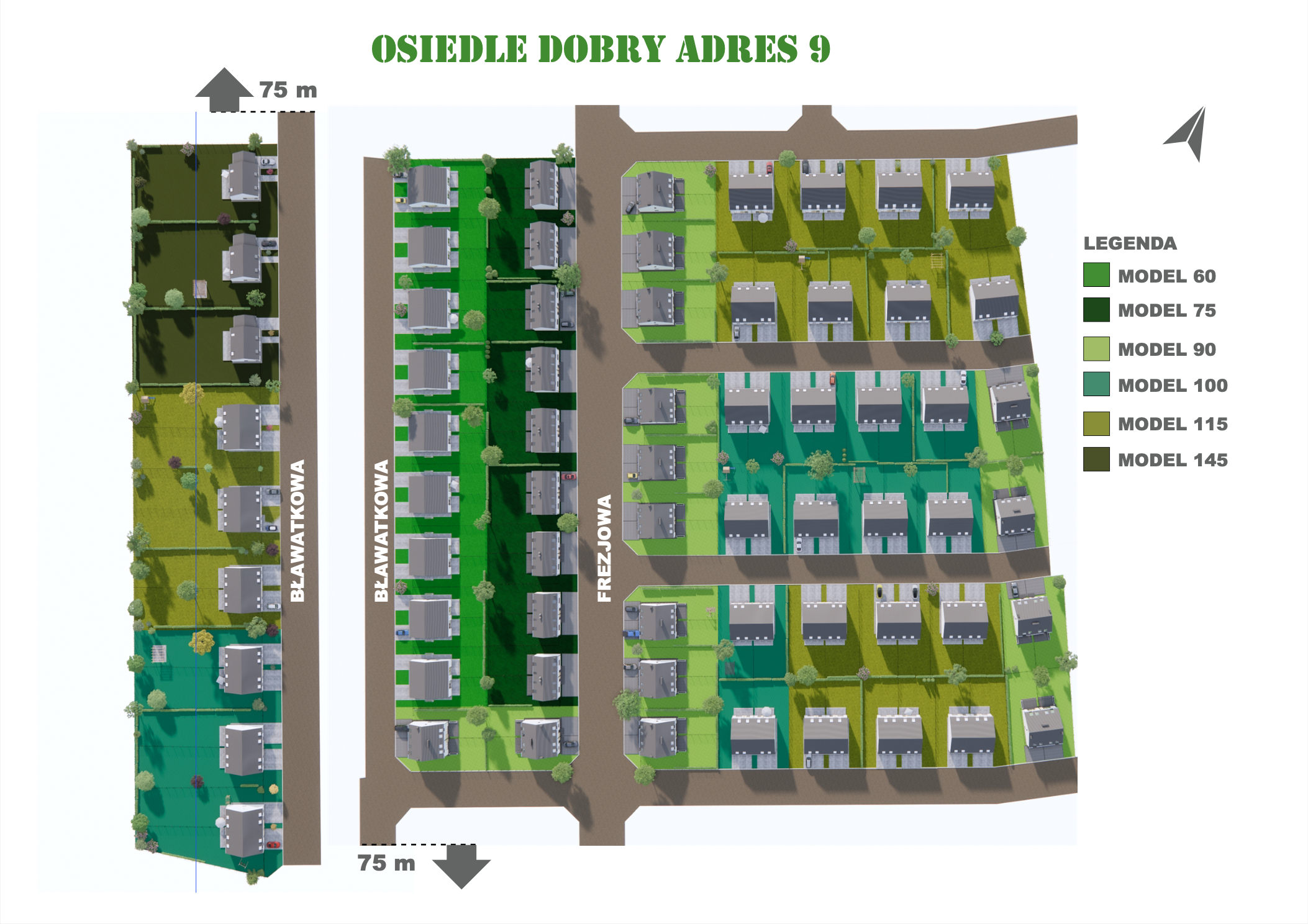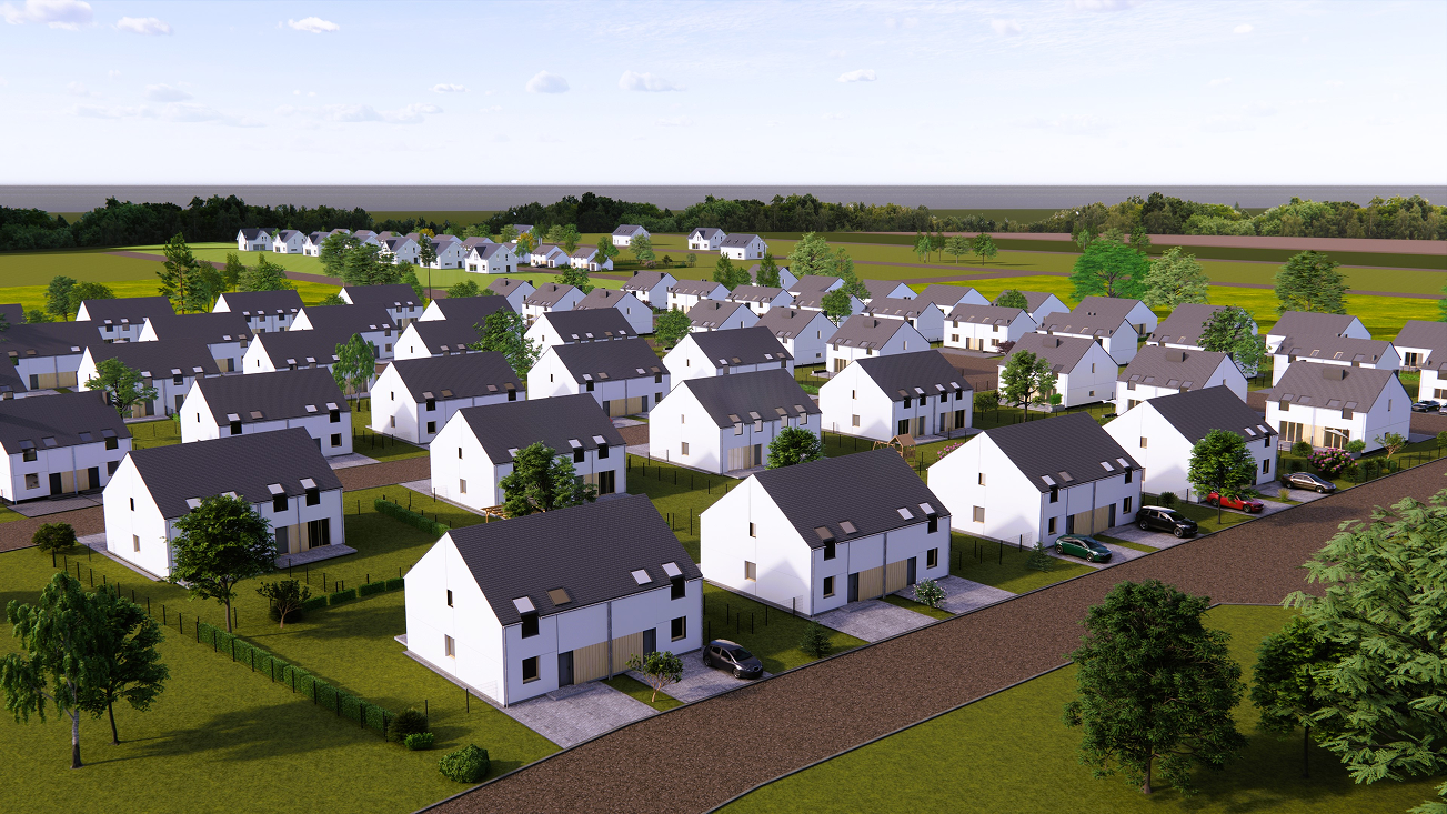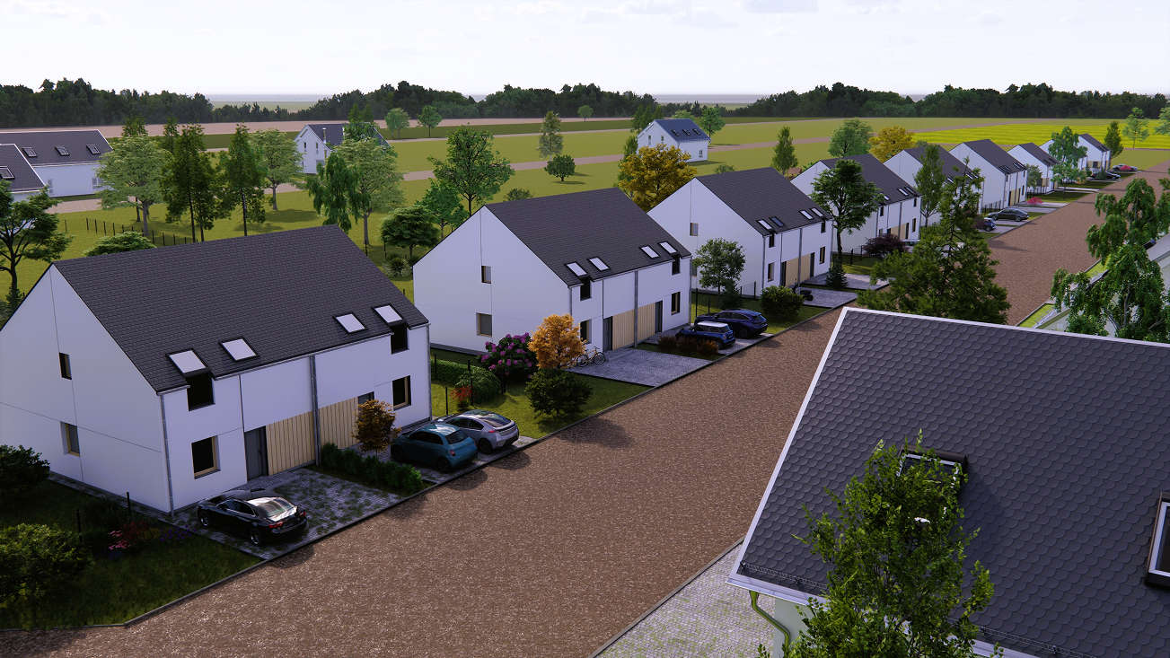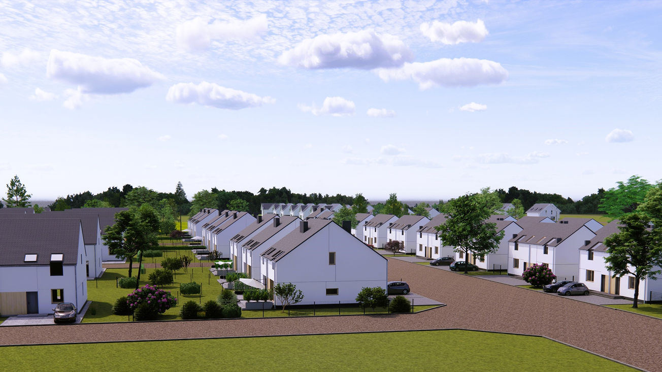 W tym urokliwym otoczeniu, z widoczną na horyzoncie Puszczą Zielonką, zaprojektowaliśmy nowoczesne osiedle kilkudziesięciu domów o zróżnicowanym metrażu. Do wyboru proponujemy domy: 60 lub 75 m2 z działkami 300 m2, 89 m2 z działkami 280 – 350 m2 oraz 101 lub 116 m2 z działkami 350 - 600 m2! Przewidziano także kilka wolnostojących domów o powierzchni 146 m2 z garażami, na działkach ok. 1200 m2.