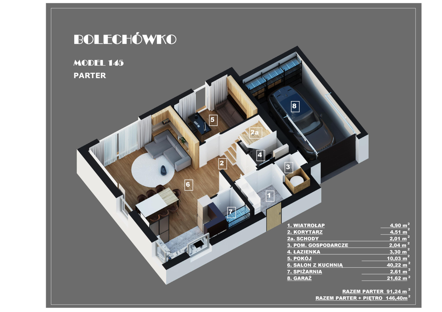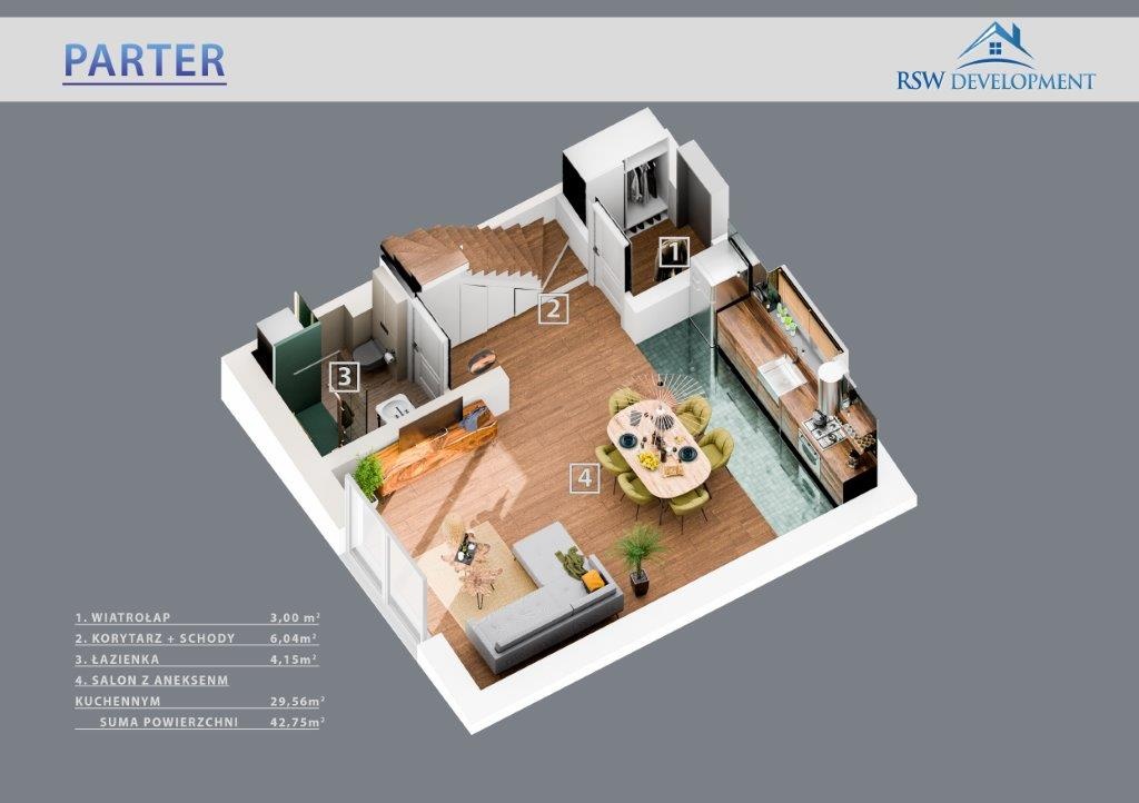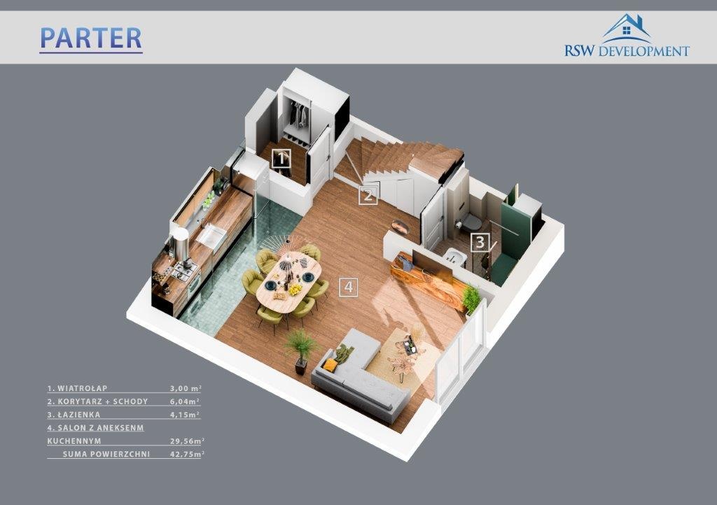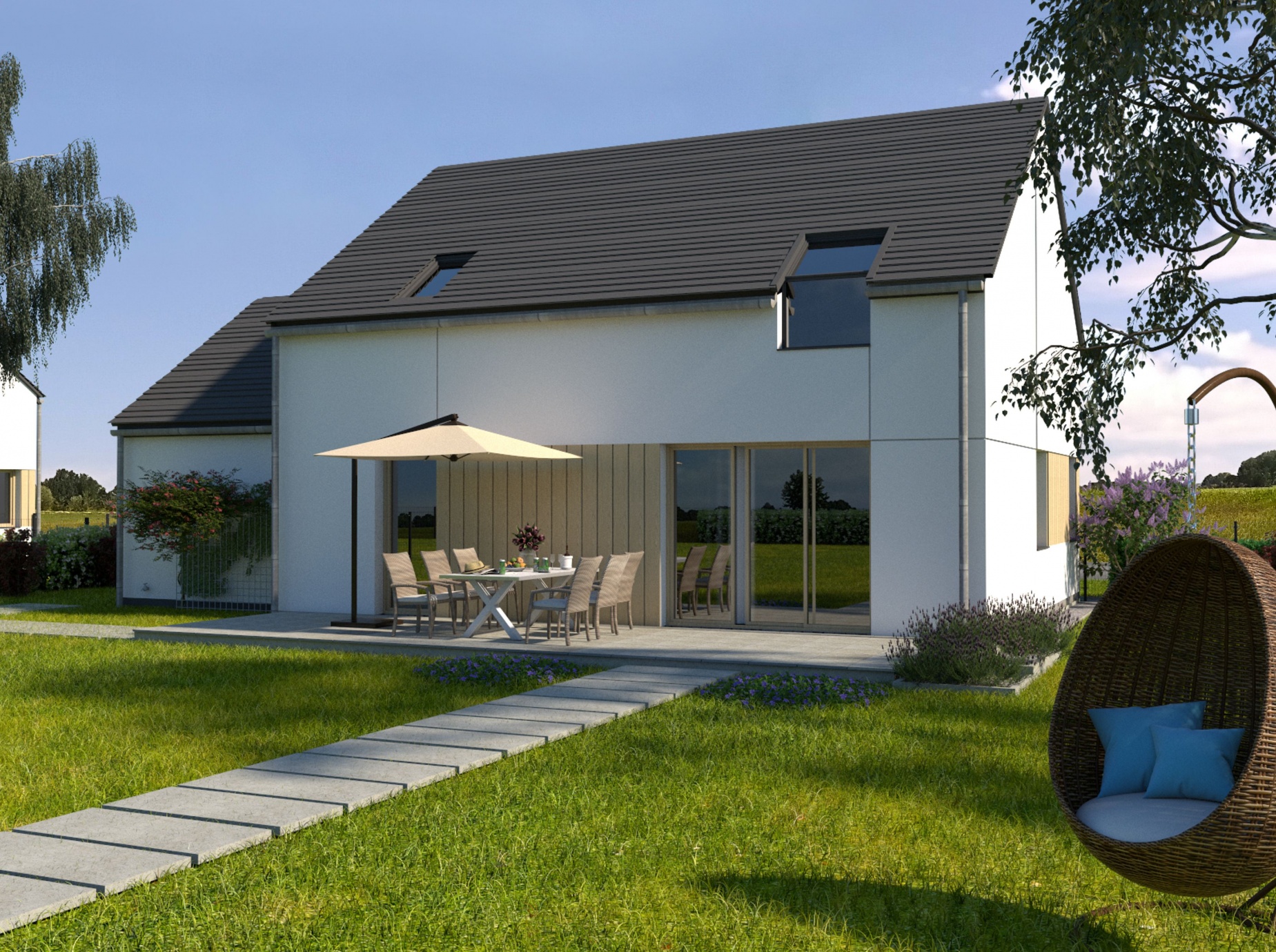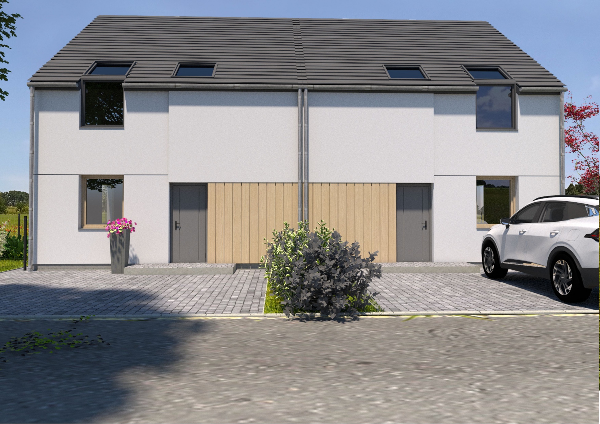 W tym urokliwym otoczeniu, z widoczną na horyzoncie Puszczą Zielonką, zaprojektowaliśmy nowoczesne osiedle kilkudziesięciu domów o zróżnicowanym metrażu. Do wyboru proponujemy domy: 60 lub 75 m2 z działkami 300 m2, 89 m2 z działkami 280 – 350 m2 oraz 101 lub 116 m2 z działkami 350 - 600 m2! Przewidziano także kilka wolnostojących domów o powierzchni 146 m2 z garażami, na działkach ok. 1200 m2.