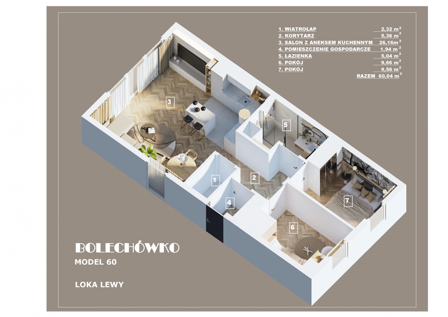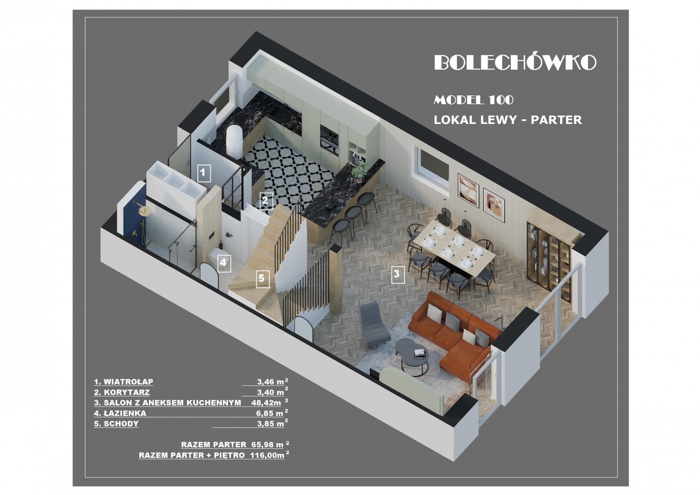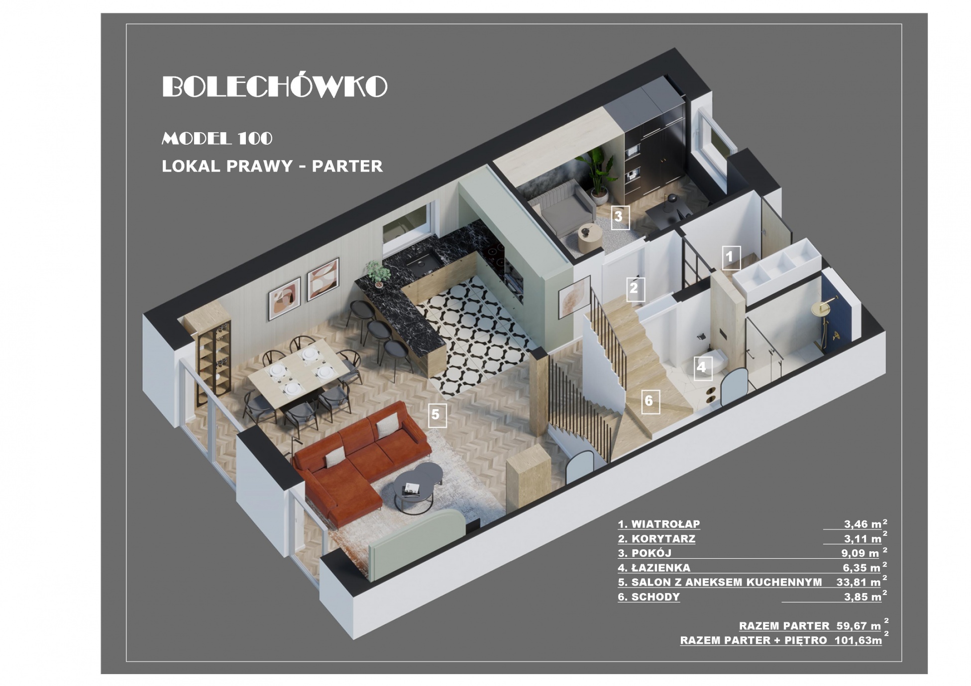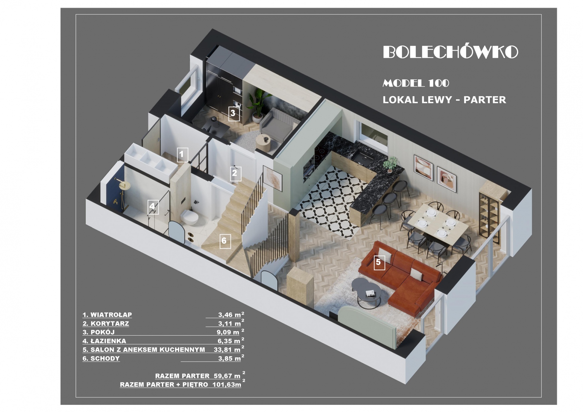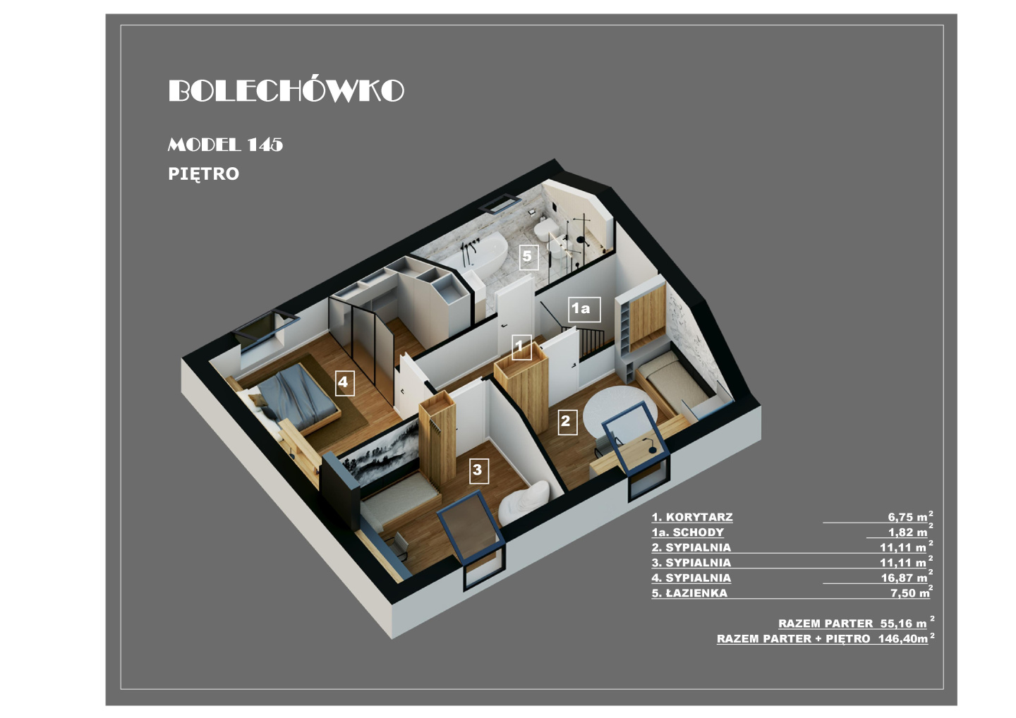 W tym urokliwym otoczeniu, z widoczną na horyzoncie Puszczą Zielonką, zaprojektowaliśmy nowoczesne osiedle kilkudziesięciu domów o zróżnicowanym metrażu. Do wyboru proponujemy domy: 60 lub 75 m2 z działkami 300 m2, 89 m2 z działkami 280 – 350 m2 oraz 101 lub 116 m2 z działkami 350 - 600 m2! Przewidziano także kilka wolnostojących domów o powierzchni 146 m2 z garażami, na działkach ok. 1200 m2.