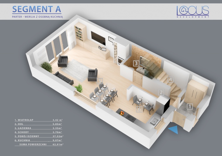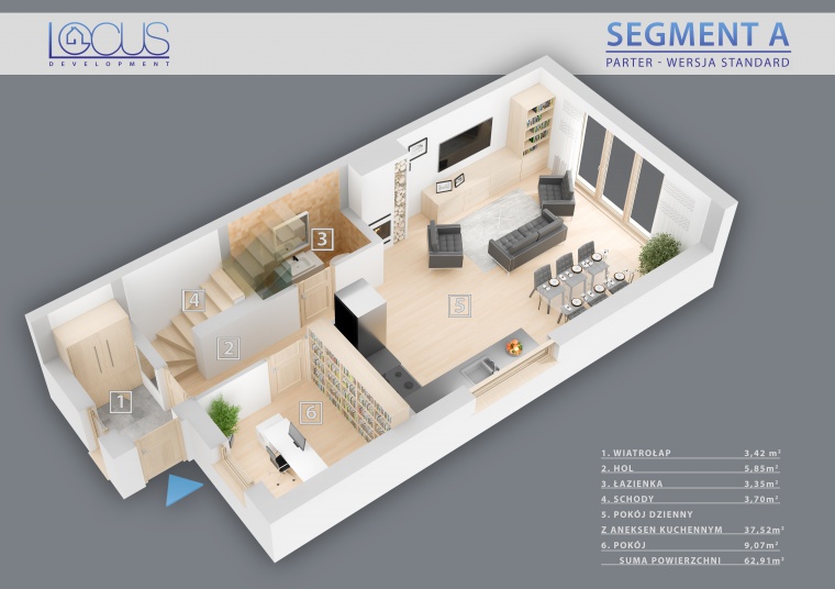 Osiedle Dobry Adres 2 to nowa inwestycja firmy LOCUS DEVELOPMENT, nawiązująca do Osiedla Dobry Adres w Murowanej Goślinie. Dobry Adres 2 powstaje w Bolechówku przy ul. Lipowej, w gminie Czerwonak, zaledwie 15 km od centrum Poznania, w pełnej uroku i przyjaznej rodzinom, podmiejskiej okolicy. W tym atrakcyjnym otoczeniu, zaprojektowaliśmy nowoczesne i kameralne osiedle: 10 budynków dwulokalowych, czyli 20 segmentów. Do Państwa wyboru są dwa metraże: 94 m2 lub 111 m2, każdy z działką ok. 500 m2! Obie wersje są bardzo funkcjonalne - na parterze znajdują się: wiatrołap, łazienka z prysznicem, salon z aneksem kuchennym oraz dodatkowy pokój, który można zaaranżować na osobną kuchnię, zaś piętro to klasyczny układ z trzema sypialniami i dużą łazienką. Z zewnątrz budynki cechuje elegancki minimalizm – połączenie bieli z czernią, przełamane naturalnymi kolorami jasnego drewna i surowego betonu, podkreślone przez wysunięte wiatrołapy i stylowe okna. Takie połączenie ciekawej architektury z dużymi ogrodami, daje komfortową przestrzeń życiową.