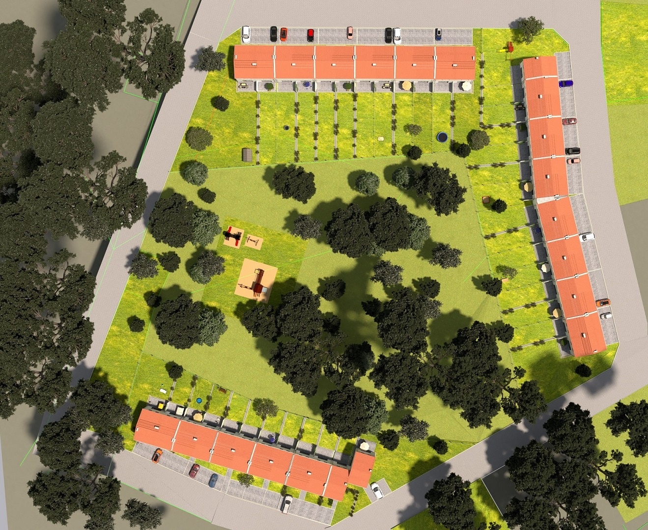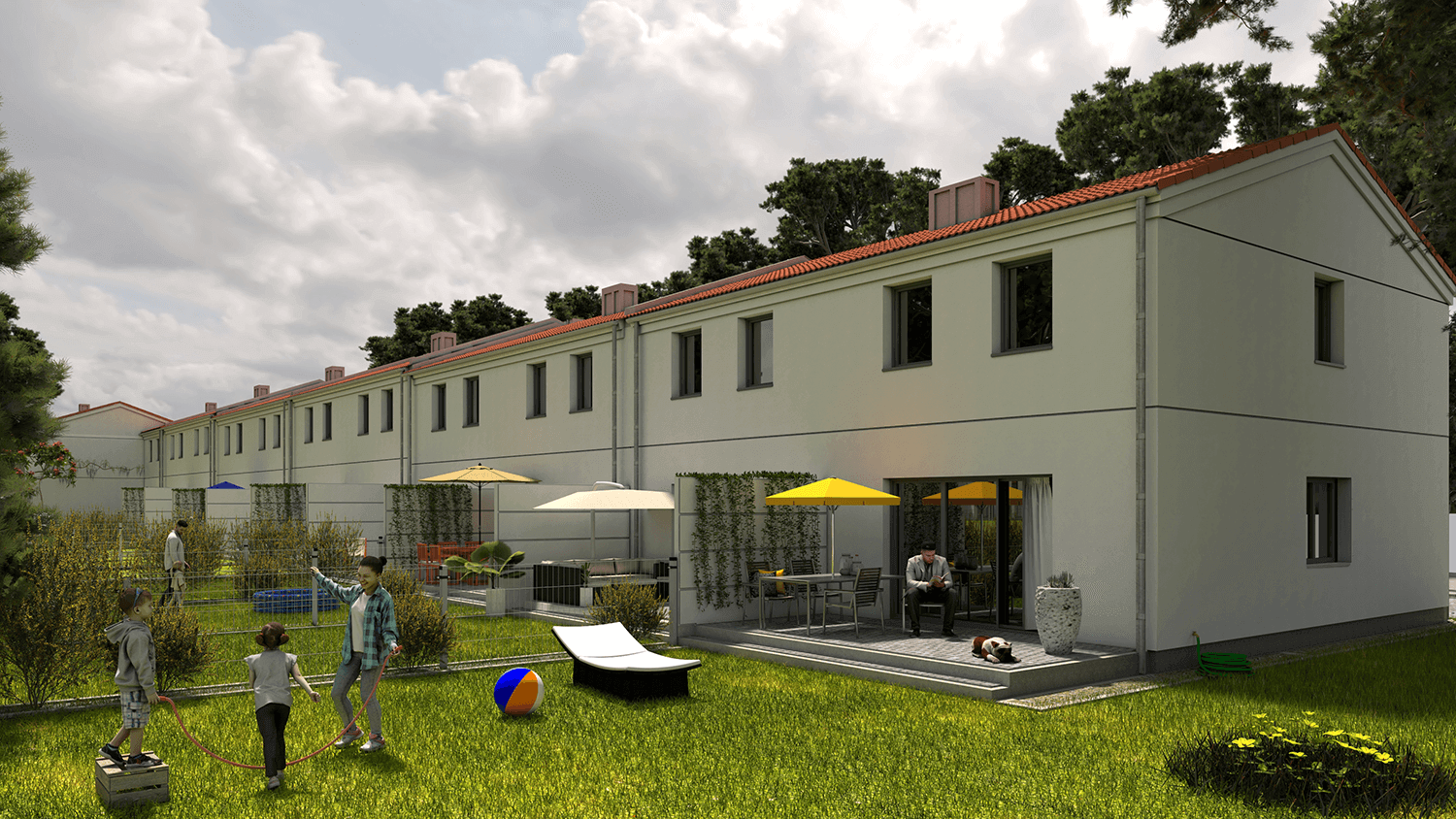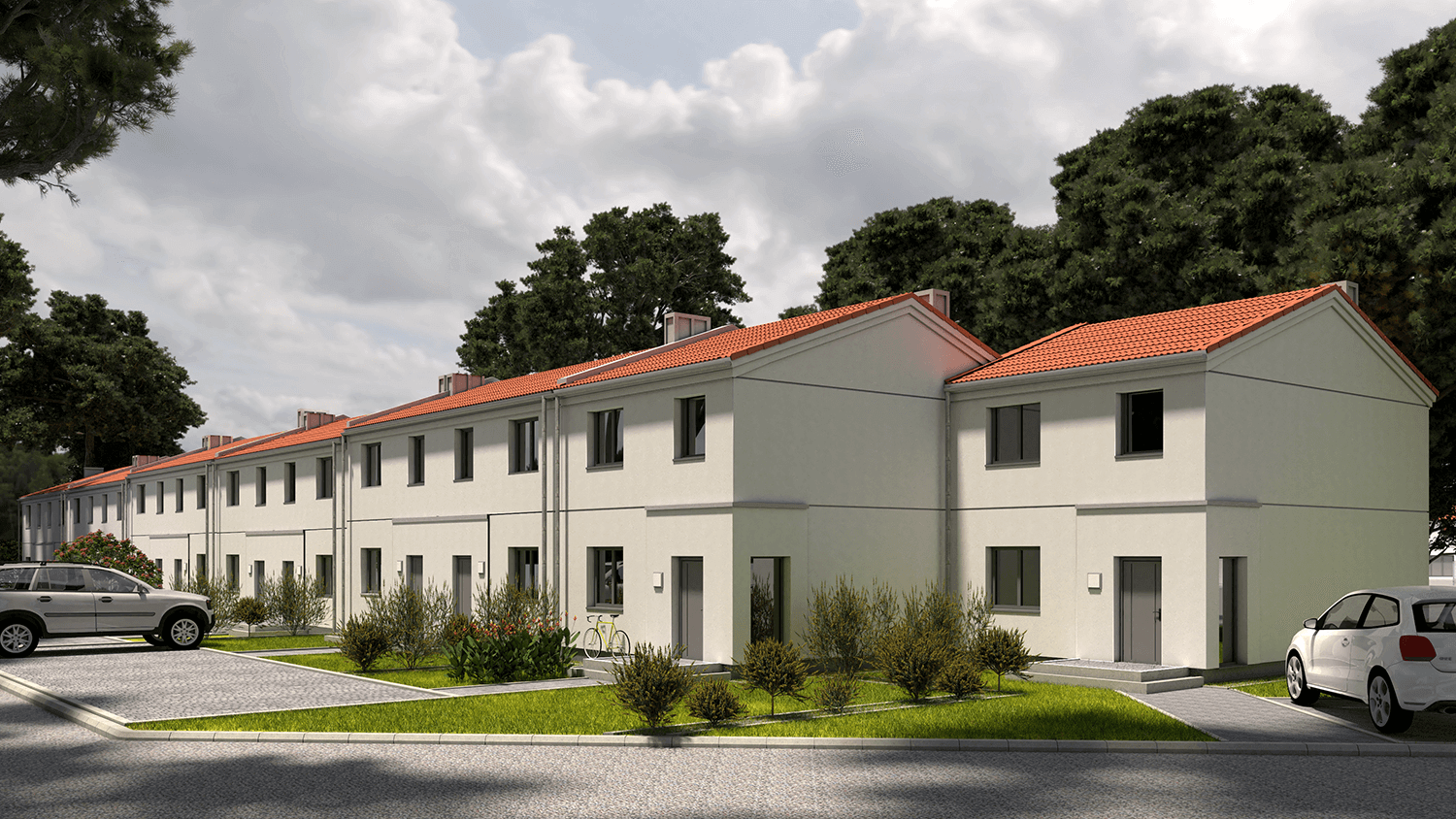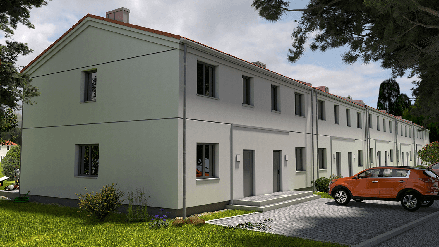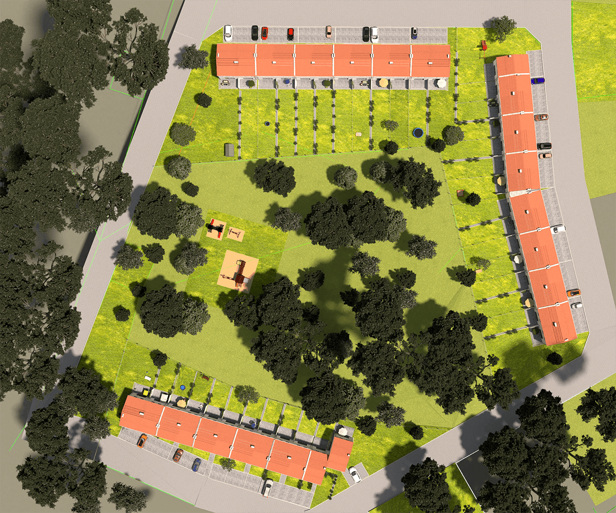 W tym atrakcyjnym otoczeniu, zaprojektowaliśmy nowoczesne osiedle w zabudowie szeregowej, składające się z trzech zespołów budynków, w których łącznie znajdzie się 39 segmentów o powierzchni użytkowej 91,6 m2. Do każdego przynależy działka o powierzchni ok. 200 m2, w przypadku segmentów wewnętrznych do nawet 500 m2, przy segmentach zewnętrznych!
